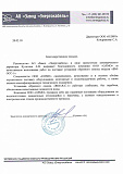Выражаем признательность за грамотную и оперативную работу персонала, связанную с поставкой оборудования.