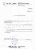 ООО «НПП Би-ТЭК» осуществляет закупку водоочистного оборудования у ООО «ОЛМО» с марта 2018 года на объекты, включающие в себя различный объём и сложность водоочистных установок.